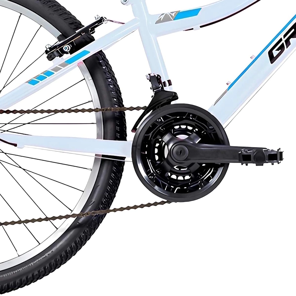 Equipada com transmissão Shimano de 21 velocidades, permite que os pequenos aventureiros superem subidas e trilhas com facilidade. Os pneus Chaoyang garantem excelente aderência, enquanto a alavanca de freio com ergonomia infantil proporciona maior segurança e controle, adequada ao tamanho das mãos das crianças.