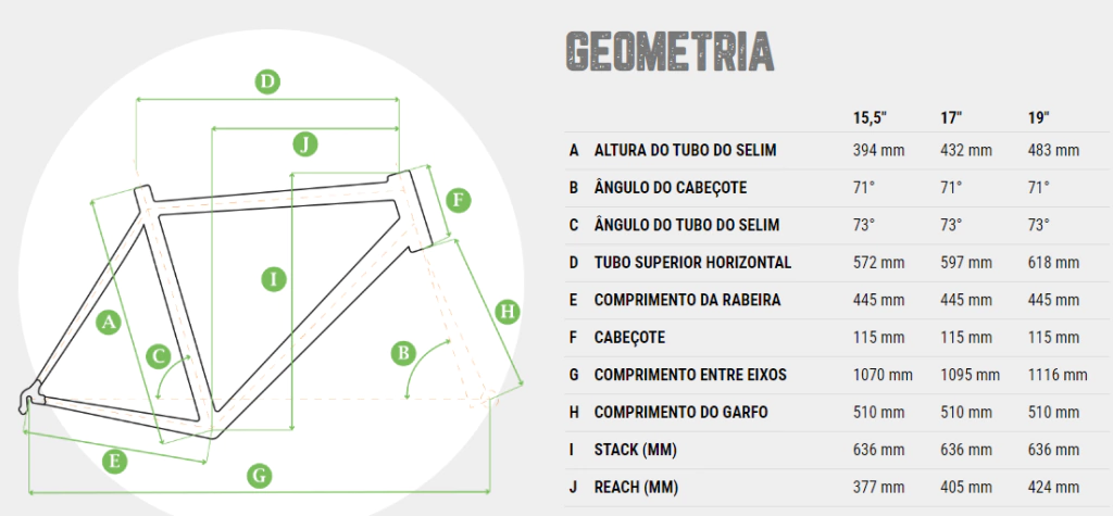 • Tamanhos Disponíveis: 15.5", 17" e 19", atendendo a diferentes estaturas de ciclistas.