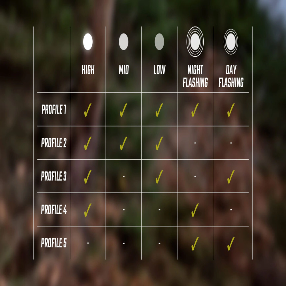 _x005F_x005F_x005F_x000D_Modos de iluminação: Cinco modos de luz: Alto (400 lm), Médio (200 lm), Baixo (100 lm), piscando noturno (300/100 lm) Piscando diurno (100 lm)