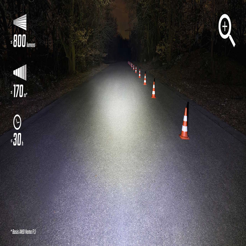 _x005F_x005F_x005F_x000D_Luz brilhante em trilhas escuras! O BUSTER 800 significa que nada o impede de aventuras noturnas. Seus 800 lúmens fornecem 170 metros (557 pés) de alcance – potência suficiente mesmo em trilhas escuras em florestas. Cinco modos de luz diferentes garantem flexibilidade em relação à luminosidade e à duração da bateria. Graças aos indicadores LED na parte superior, você sempre fica de olho nas configurações atuais e na vida útil restante da bateria. Cinco perfis de modo predefinidos proporcionam maior facilidade de uso. A bateria de íon de lítio ecologicamente correta mantém você na trilha por até 30 horas, dependendo do modo de iluminação.